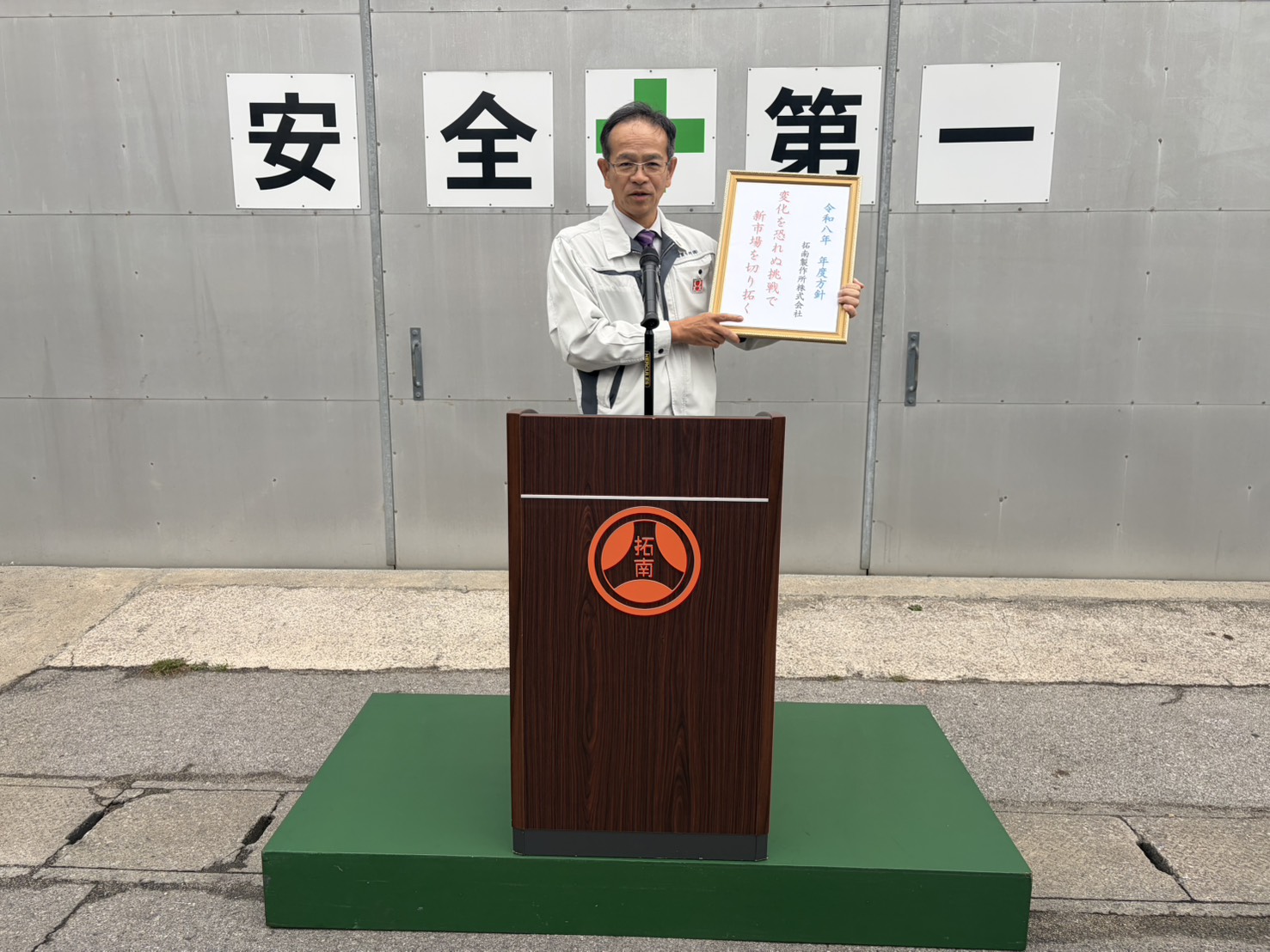 役員方の安全祈願から始まり、辞令交付・新入社員紹介、年度方針の発表、